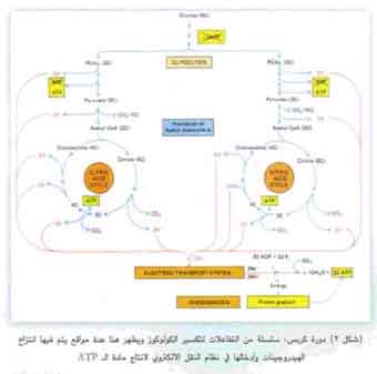 والدورة التي تتم فيها تكسير المواد السالفة الذكر وانتزاع الهيدروجينات تسمى بدورة كربس (KREBS CYCLE ) ( شكل 2 ) ـ نسبة إلى العالم الذي اكتشف تفاعلات هذه الدورة ـ وهي ثمرة بحوث مضنية لعشر سنوات متواصلة أجراها هذا العالم.