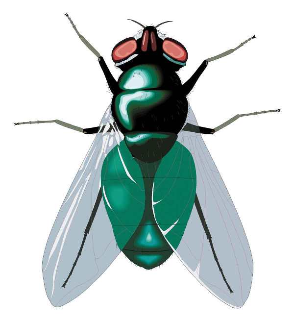 الذباب أنواع كثيرة أشهرها الذبابة المنزلية وطولها حوالي 8 مم، لونها اردوازي مع أربعة خطوط طولية على الصدر وخط طولي أسود في وسط البطن، أجزاء الفم متحورة إلى خرطوم ماص ينتهي بفصين إسفنجيين يحصران فتحة الفم.
