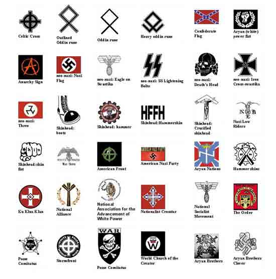 بعض الشعارات للمنظمات الإرهابية اليمينية الغربية المتطرفة والتي تتبنى سياسة سيادة الغربيين البيض على غيرهم من الأجناس. وتعتبر هذه المنظمات أن الملونين هم وحوش وحيوانات بشرية متخلفة ينبغي إستبعادها أو إبادتها حيث تعتقدون أنها لا تصلح للحياة بناءاً على تعاليم داروين