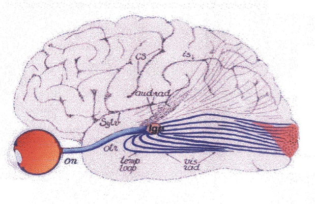 1 ـ مركز الإبصار يقع في القفا من القشرة الدماغية ( الشكل رقم 1 ).